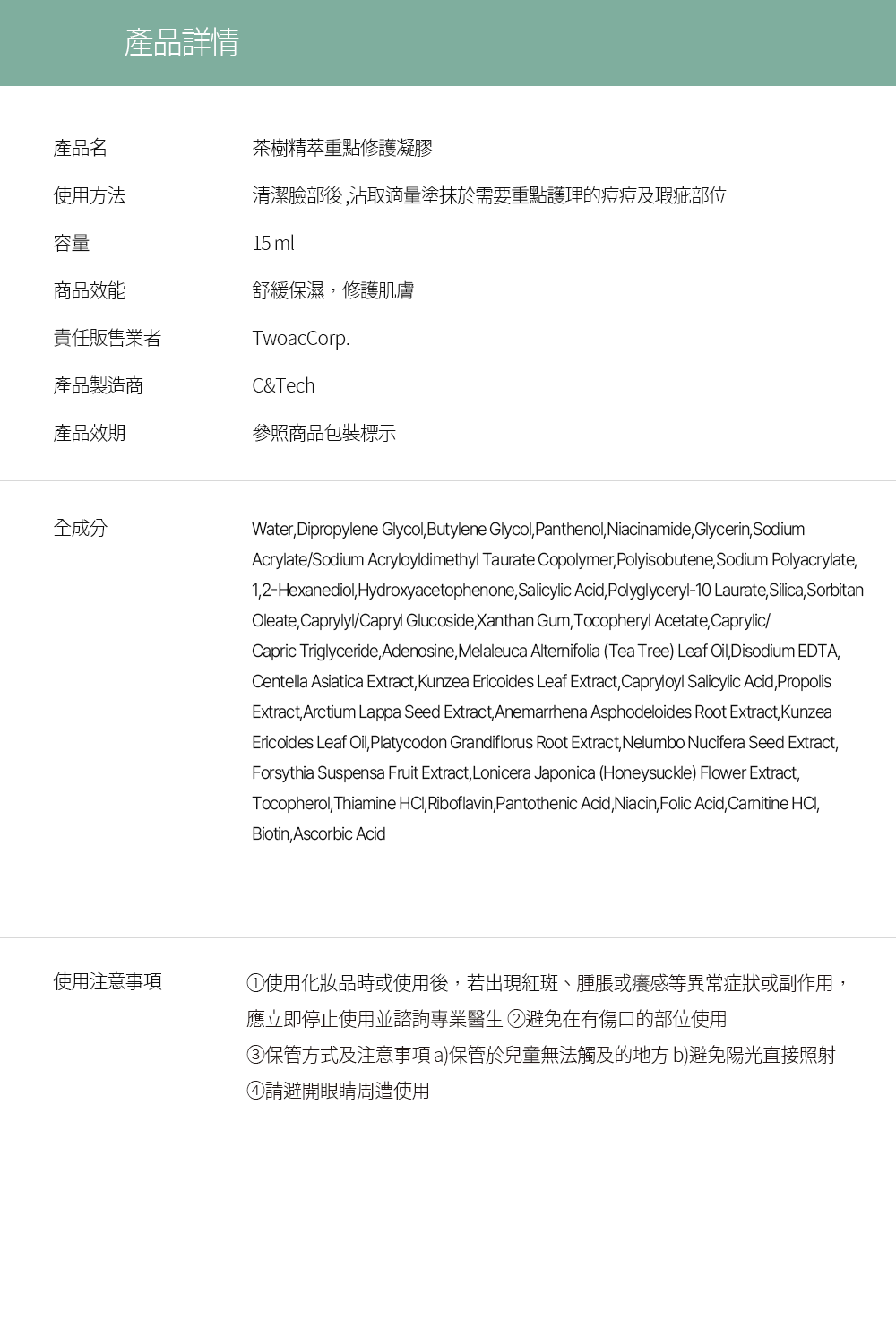 ▶ 茶樹精萃重點修護凝膠